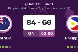 体育资讯08月13日讯 今日男篮亚洲杯八强赛,澳大利亚84-60大胜菲律宾,轻松晋级四强!