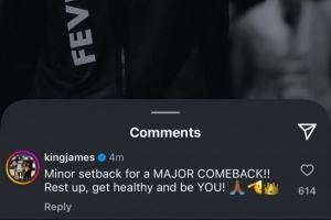 湖人球星詹姆斯评论道:“小小的挫折成就大大的回归!好好休养,恢复健康,做你自己!♂️”