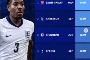 埃利奥特-安德森(诺丁汉森林,9月上演首秀):3200万欧元