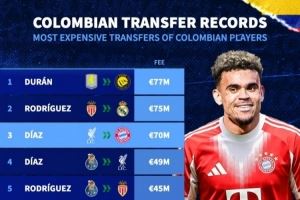 ■哥伦比亚球员最高转会纪录TOP10: